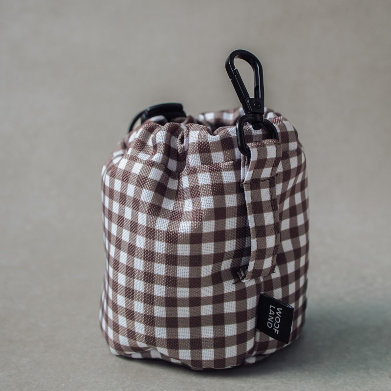 Mimo niewielkich wymiarów saszetka jest pojemna i zmieści odpowiednią ilość przysmaków potrzebnych podczas spaceru czy szkolenia. Jej klasyczny wzór Chocolate Check doskonale komponuje się z innymi akcesoriami Woofland, tworząc elegancki i spójny zestaw spacerowy.