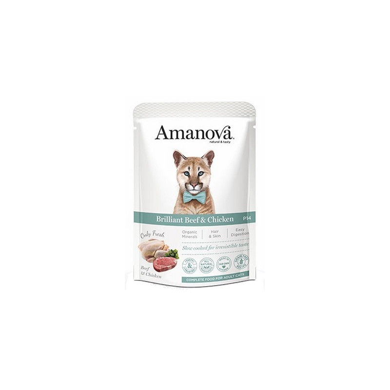 Amanova Cat Brilliant Beef & Chicken saszetka 85 g to zdrowa, naturalna i smakowita mokra karma, która dostarcza wszystkich niezbędnych składników odżywczych. Wybierz pełnowartościowe pożywienie bez kompromisów – wybierz Amanova!