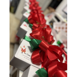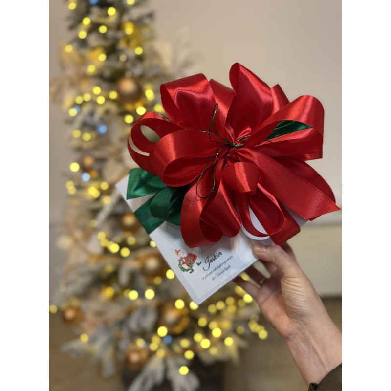 Box będzie spakowany w nowy, biały kartonik, na zewnątrz znajdzie się piękna świąteczna kokarda, personalizacja w postaci imienia pieska, natomiast w środku zawartość zapakowana będzie w bibułkę, dodatkiem będą świąteczne ozdoby. W cenie boxu znajduje się koszt produktów, oraz koszt usługi pakowania ozdobnego wraz z dekoracjami.