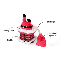 P.L.A.Y. Merry Woofmas – Mikołaj w kominie 29 cm wyróżnia się zróżnicowaną budową, która zachęca psa do dłuższej i bardziej urozmaiconej aktywności.
